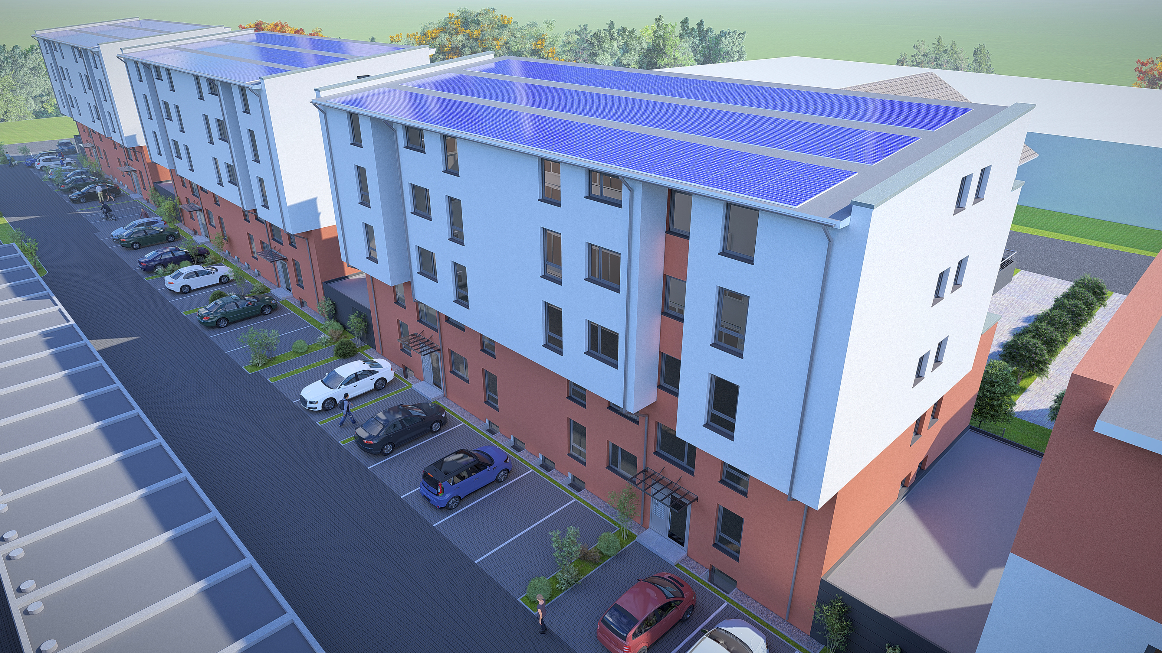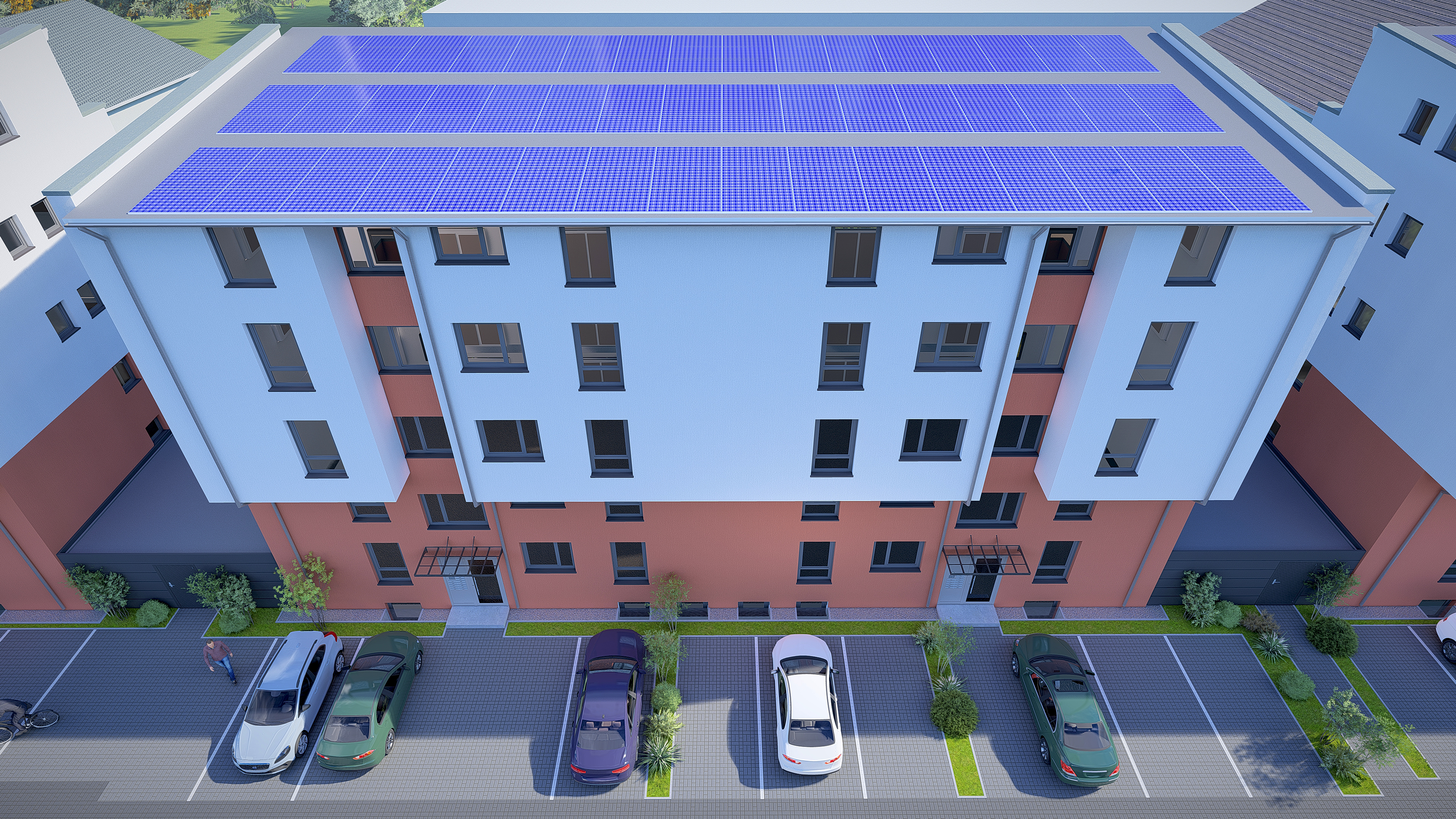- Jede Wohnung mit Südbalkon oder Dachterrasse
